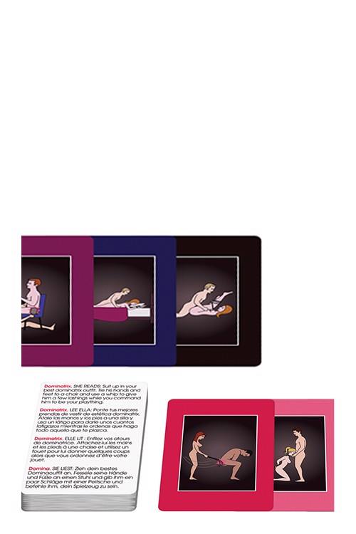 Playfully kinky sex positions cards. Use the game cards as flash cards for ideas of sex positions. Use with bondage equipment or common clothing item replacements, such as belt, neck ties, scarves and robe ties.Languages: English / Spanish / French / German