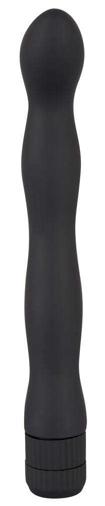 Falisty wibrator analny z okrągłą końcówką i bezstopniowo zmienną wibracją. Czarny. Około 18 cm długości, średnica 1,7-2,4 cm. Materiał: ABS. (Prosimy zamawiać osobno baterie: 2 x Micro/AAA)