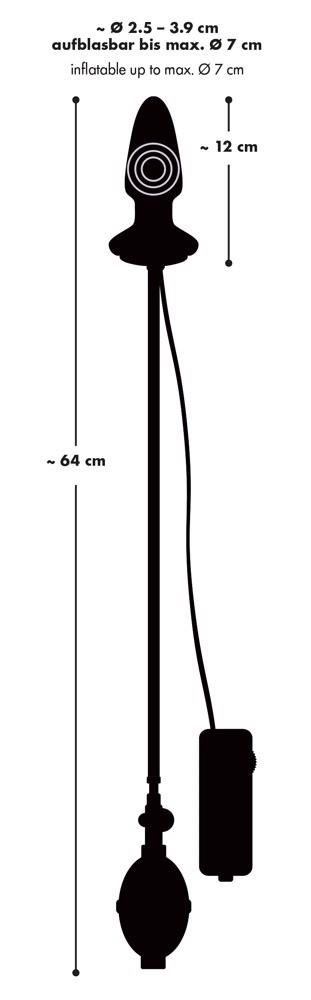 Wprowadzić do pochwy lub odbytu i nadmuchać z przyjemnością. Naciśnij na pęcherz, jeśli chcesz zrobić orgazm, i na prostatę, jeśli chcesz ją pobudzić. A potem dodać wibracje – orgazm gwarantowany! Z czarną lateksową powłoką, która jest łatwa do przesuwania. 12 cm długości, średnica ok. 2,5 do 3,8 cm – możliwość pompowania do 7 cm!