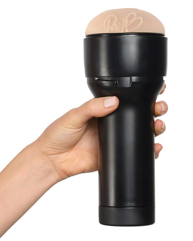 Masturbator Feel Rae Lil Black by Kiiroo with the original moulded vulva of erotic star Rae Lil Black. Even the very diversely structured interior comes very close to Rae Lil’s vagina and provides an intense massage during handjob. The inner sleeve made of skin-like soft Superskin material is even signed with Rae Lil’s autograph next to the vulva lips. The sleeve can be easily removed from the handy, discreet housing for cleaning.