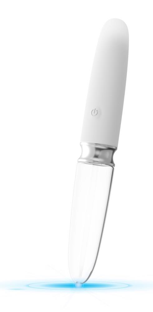 The high-quality, skin-friendly material liaison (glass and silicone) slides over the skin and into intimate areas almost on its own. The Straight LED Vibrator can also be cleaned easily thanks to its smooth surfaces. The glass end can also be warmed up or cooled down making it perfect for fancy temperature play.