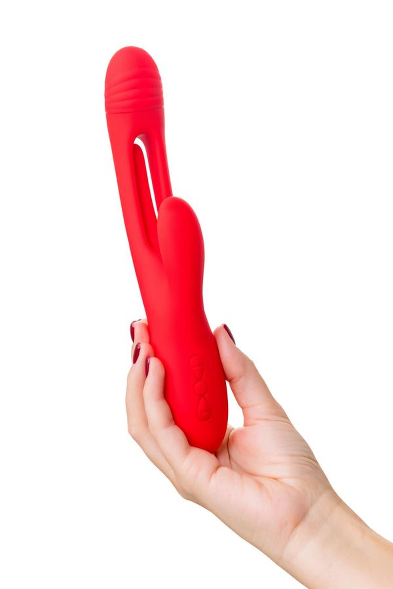 JOS Vibrator with clitoral stimulator Patti with moving tongue, silicone, red, 24 cm