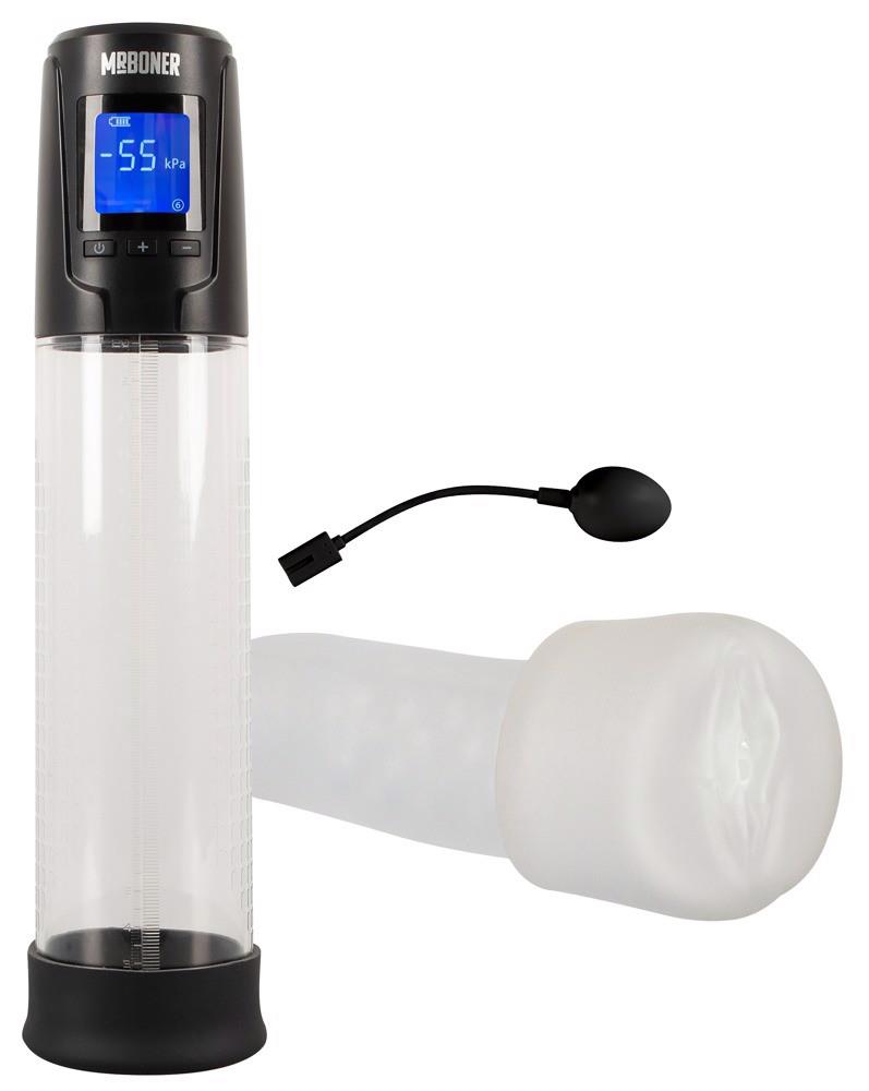 Automatic Masturbation Pump by Mr. Boner combines a penis pump and a masturbator in one toy. Effective penis/potency training and vibrating vagina fun with blowjob feelings – fully automatic and convenient at the touch of a button! No less than 2 motors provide the enormous suction power in 6 different modes as well as the varied vibrations in 8 modes.