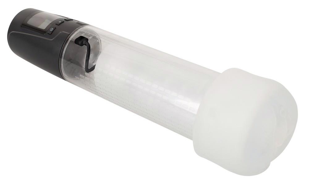 In the transparent cylinder with measuring scale, the sucking negative pressure is generated quickly and conveniently, causing the penis to swell to its maximum size and shape. The LED display provides perfect control of the vacuum and suction modes up to 55 kPa as well as showing the battery level. For additional vibrating fun, simply insert the bullet vibrator and sleeve into the cylinder. The stretchy silky soft sleeve in a vagina look is equipped with countless soft stimulation nubs for a very realistic penis massage.