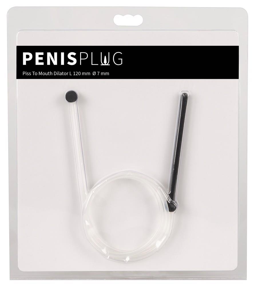 Hollow Piss to Moth Dilator from Penisplug with a fixed tube and mouthpiece. Everything is seamlessly manufactured and pleasantly flexible and elastic for carefree play and wear. With its length of 75 cm, the transparent tube is long enough even for self-tasting.