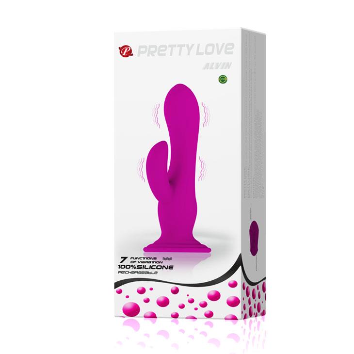 Nowoczesny wibrator Pretty Love Alvin to połączenie najwyższej jakości materiałów oraz przemyślanej konstrukcji. Ten wibrator z króliczkiem przeznaczony jest do jednoczesnego masażu łechtaczki i waginalnego, a dodatkowo zastosowana w nim przyssawka pozwala na korzystanie z niego w pionie – na pewno przypadnie do gustu amatorkom pozycji na jeźdźca!