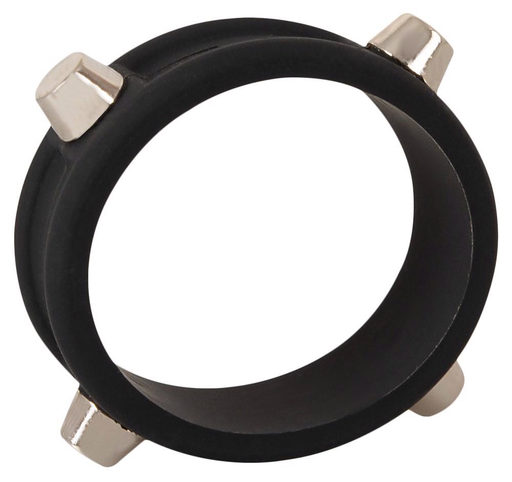 Czarny Cock Ring with Studs od Rebel wyposażony jest w metalowe ćwieki. Nie tylko prezentuje się efektownie, ale również sprawia, że penis staje się twardy! Elastyczny pierścień na penisa zakładany jest na członka, wywierając nacisk, który powoduje zastój krwi, wspomagając tym samym erekcję. Solidny pierścień wykonany jest z aksamitnie miękkiego silikonu, co sprawia, że można go łatwo zakładać i zdejmować. Doskonale dopasowuje się również do kształtu penisa.