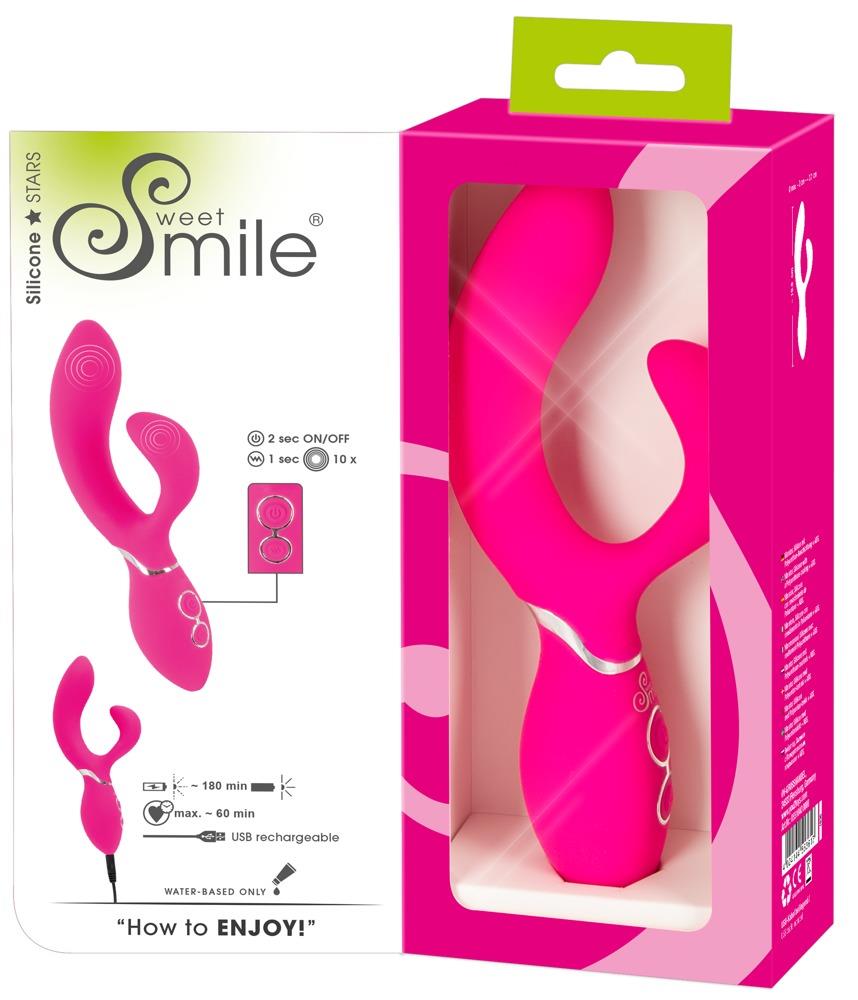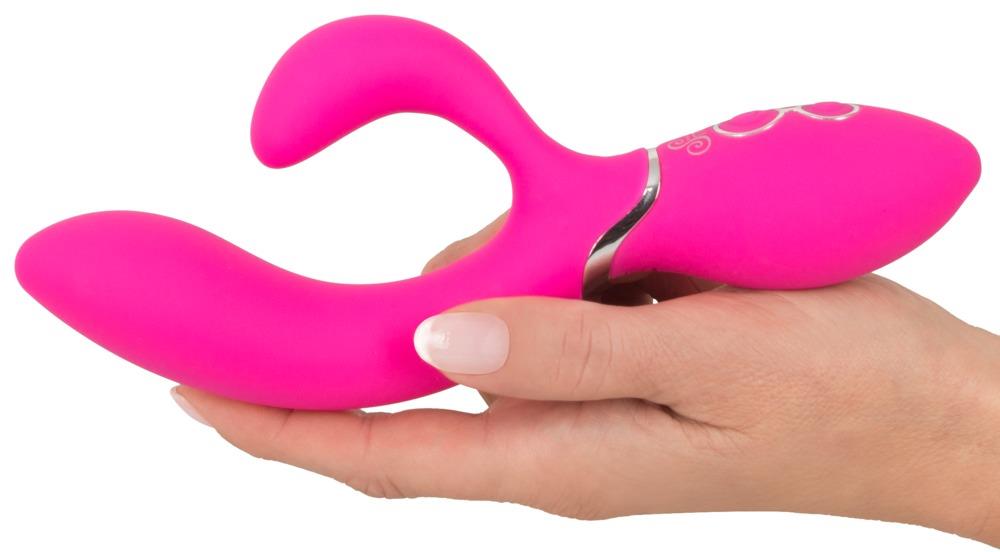 Wonderfully curved vibrator with a clitoral stimulator for simultaneous vaginal and clitoral stimulation. It is also unbelievably flexible which means that it is always touching the G-spot and the clitoris. The 10 vibration modes can be easily adjusted at the push of a button and provide diverse pleasure during double stimulation. The vibrator is covered in soft silicone material which feels great against the skin during pleasure. Vibro-pleasure can also be enjoyed under water because this vibrator is waterproof. It can be recharged with the included USB cable.