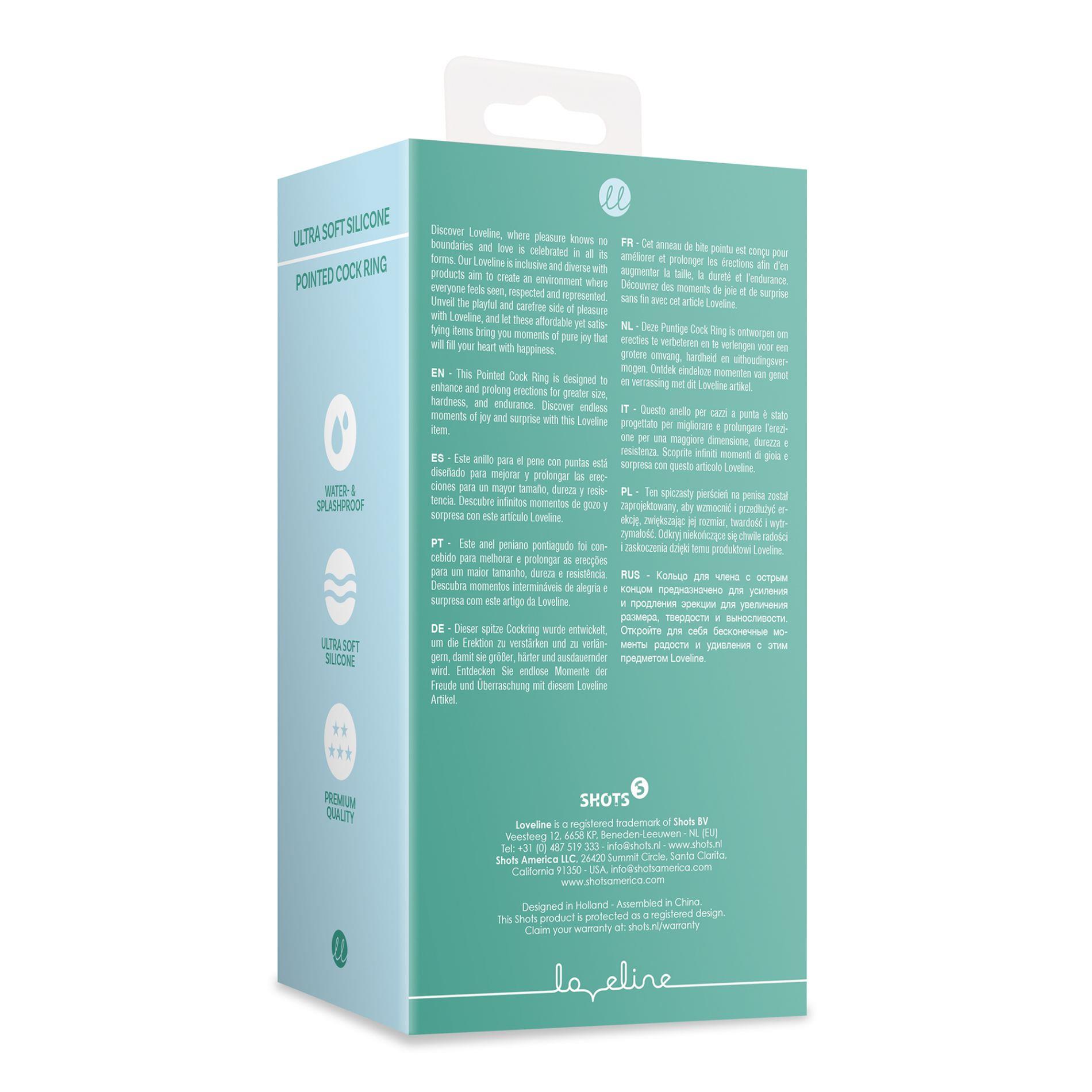 Ten spiczasty pierścień na penisa został zaprojektowany, aby wzmocnić i przedłużyć erekcję, zwiększając jej rozmiar, twardość i wytrzymałość. Odkryj niekończące się chwile radości i zaskoczenia dzięki temu produktowi Loveline.